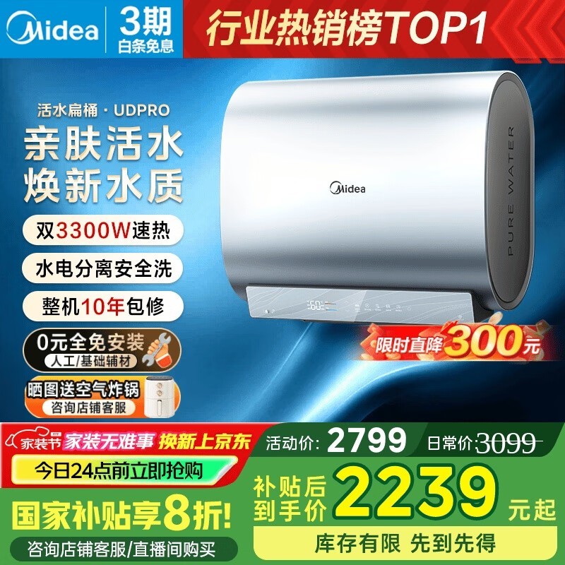 美的玲珑60升电热水器 京东到手价1967元