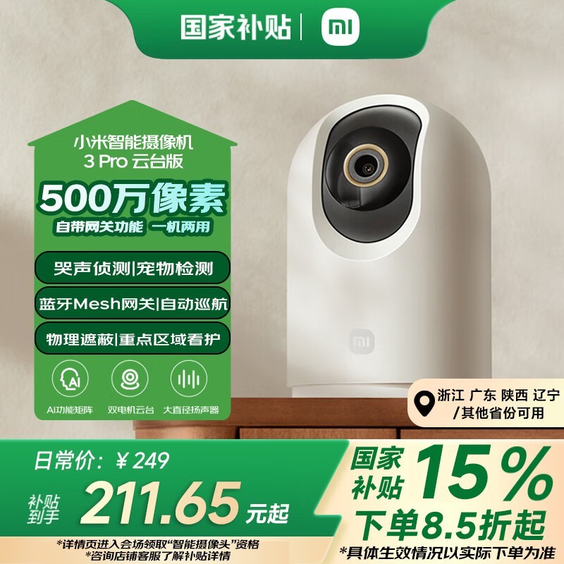 小米智能摄像机3 Pro云台版促销中到手仅173元