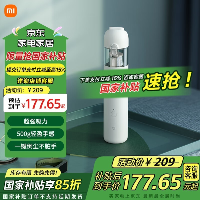 米家手持吸尘器轻至0.5kg强劲吸力低至176元