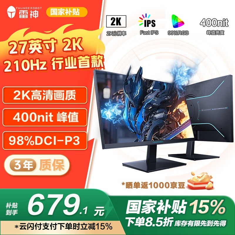 雷神ZQ27F210 27英寸显示器京东优惠价665元