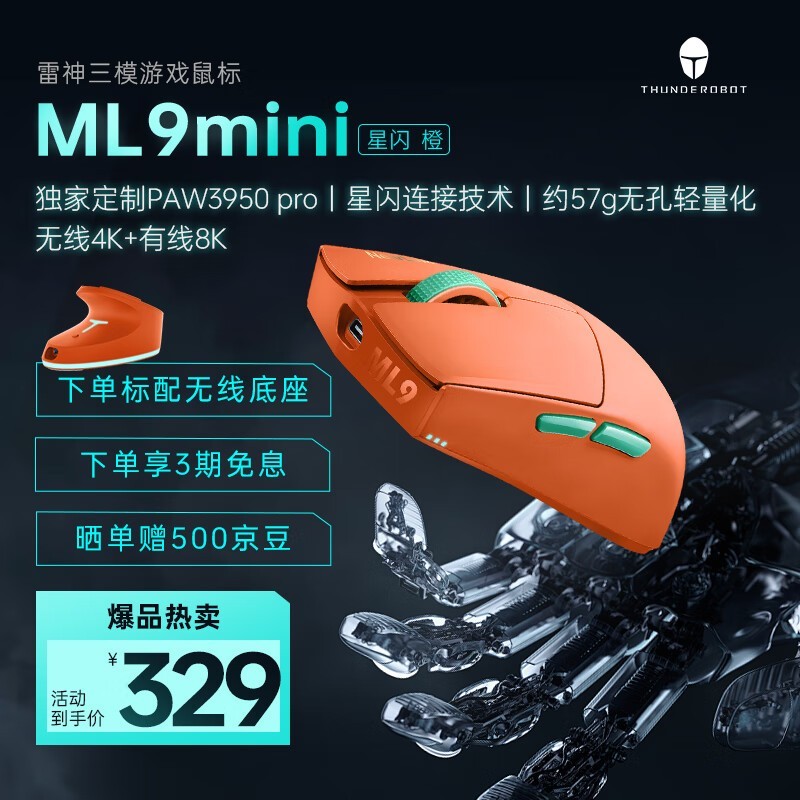 雷神ML9 mini增程版橙色鼠标京东促销价309元