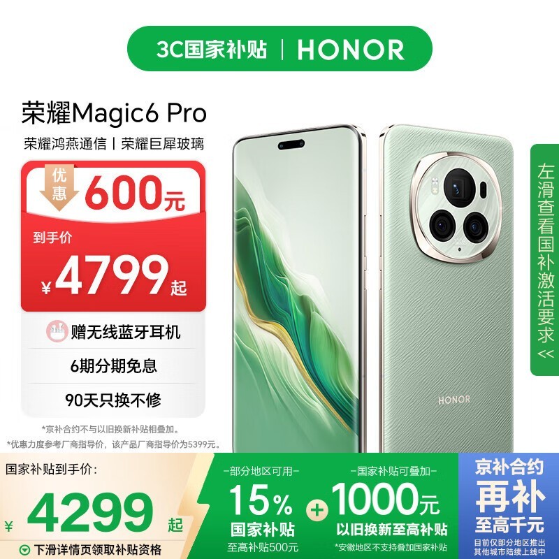荣耀Magic6 Pro 5G手机京东促销,到手4199元
