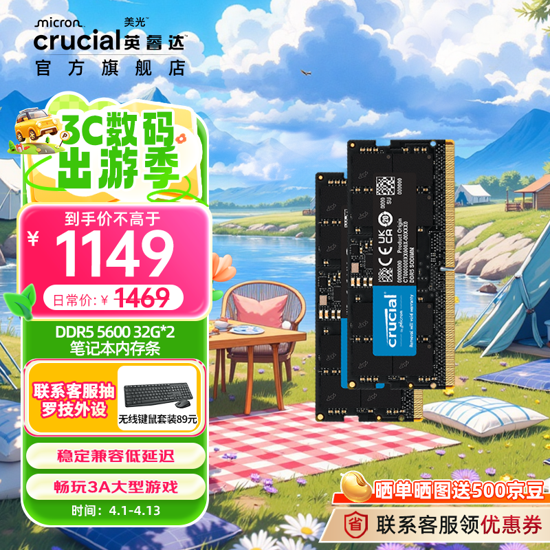 Crucial笔记本内存条DDR5 5600频率优惠价1119元