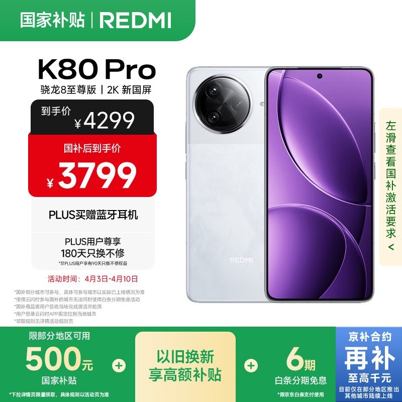 Redmi K80 Pro 5G手机京东特惠仅3799元