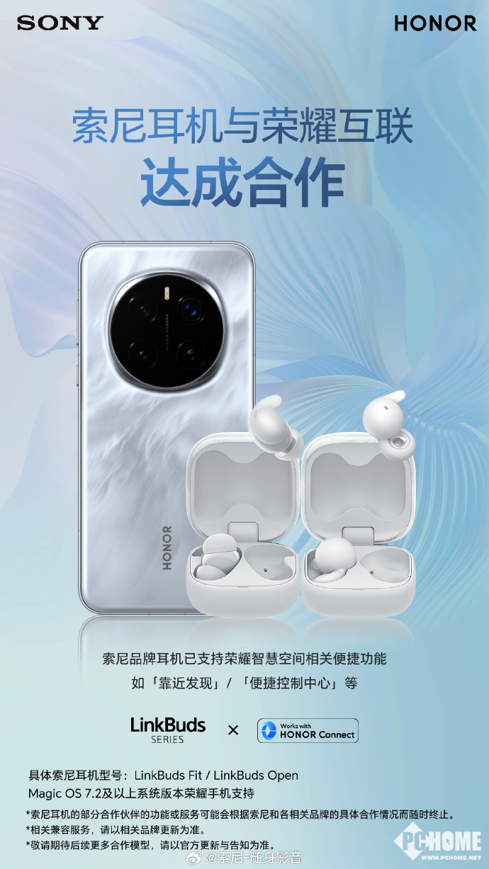 此前,索尼官方宣布索尼耳机与荣耀互联达成合作,可支持荣耀智慧空间相关便携功能,目前支持的索尼耳机型号包括LinkBuds Fit、LinkBuds Open等。荣耀手机需要是Magic Os 7.2及以上系统版本的手机。