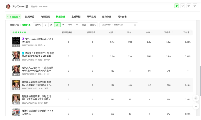 飞瓜数据显示,“刀小刀”场均直播带货销售额为50万元,最近一场直播带货销售额高达750万。视频广告方面,“刀小刀”合作过包括欧莱雅在内的多个美妆品牌。