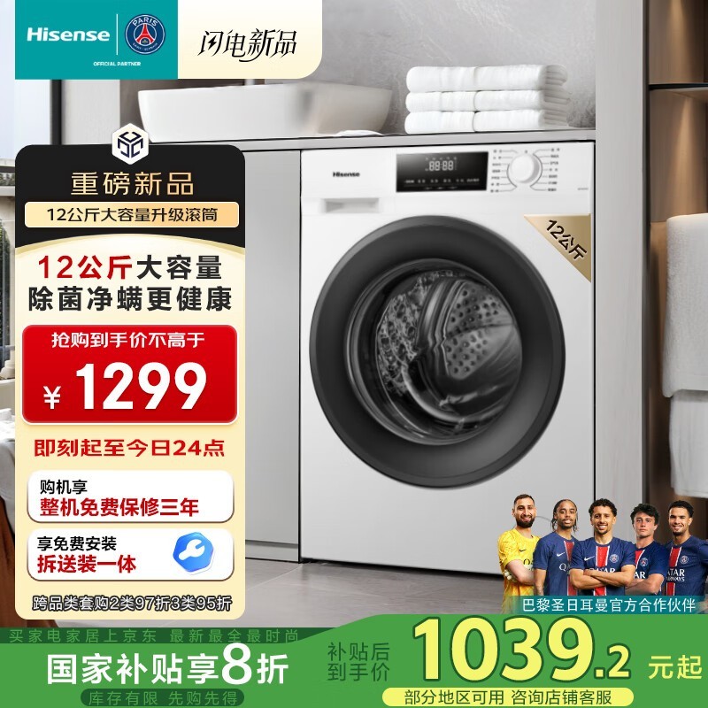 海信12公斤全自动滚筒洗衣机京东促销到手仅835元