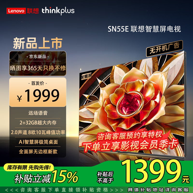联想Lenovo55英寸智慧屏电视4K超高清智能远场语音