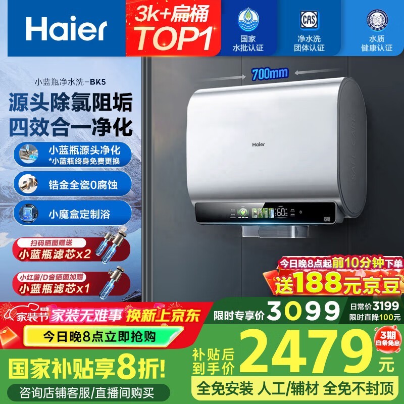 海尔电热水器EC6003HD-BK5KAU1限时优惠到手2077元