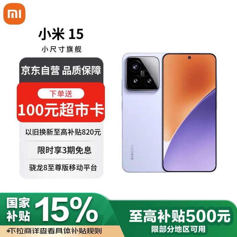 小米Xiaomi 15 5G手机丁香紫12GB+512GB京东活动价3899元