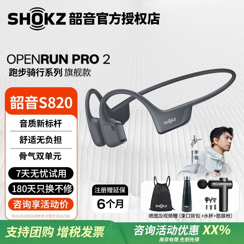 韶音OpenRun Pro 2 S820骨传导蓝牙耳机砂石黑限时优惠