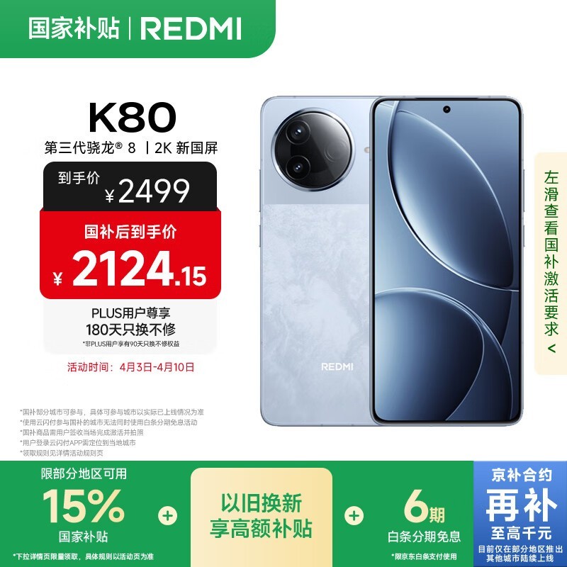 Redmi K80 5G手机12GB+256GB版仅2124元到手