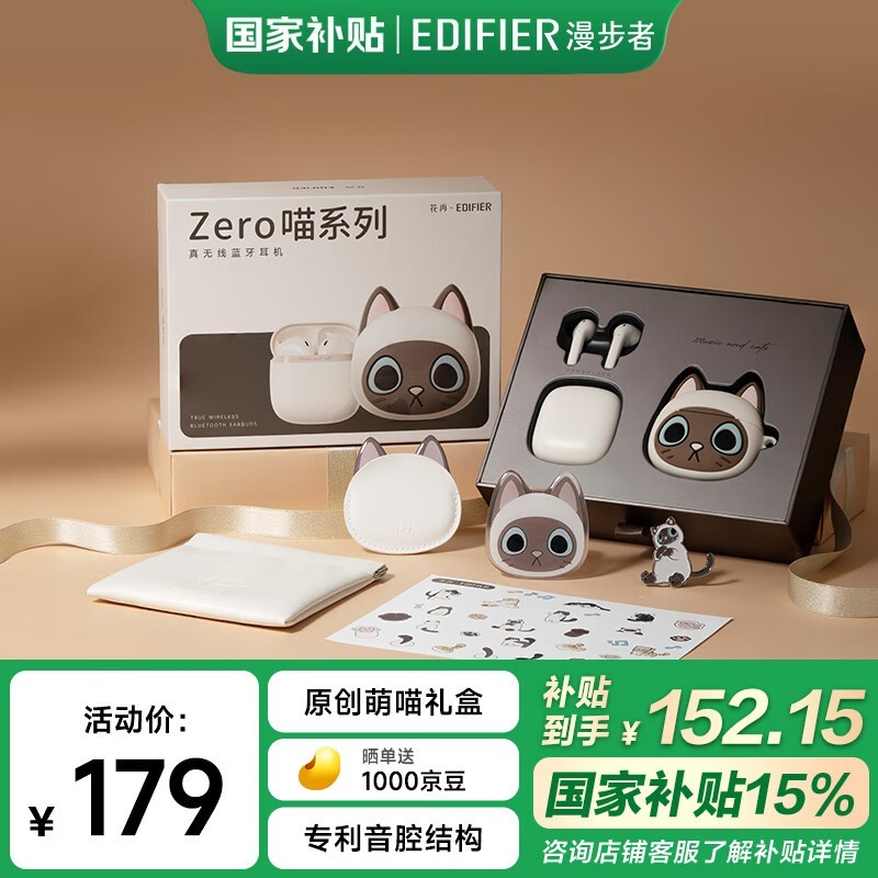漫步者Zero喵系列礼盒蓝牙耳机暹罗猫咪主题促销