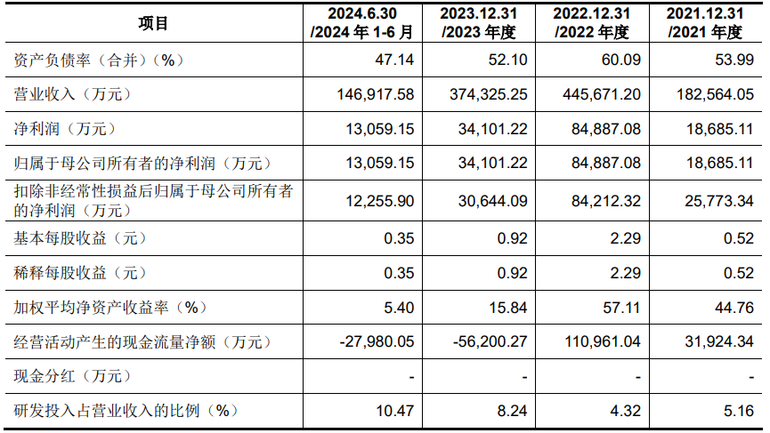 IPO在审期间,首航新能共披露3版招股书,业绩数据最早可追溯到2019年,称得上是经历了一整轮行业周期。其中在2021年至2023年,营业收入分别为18.26亿元、44.57亿元、37.43亿元,归母净利润分别为1.87亿元,8.49亿元、3.41亿元。