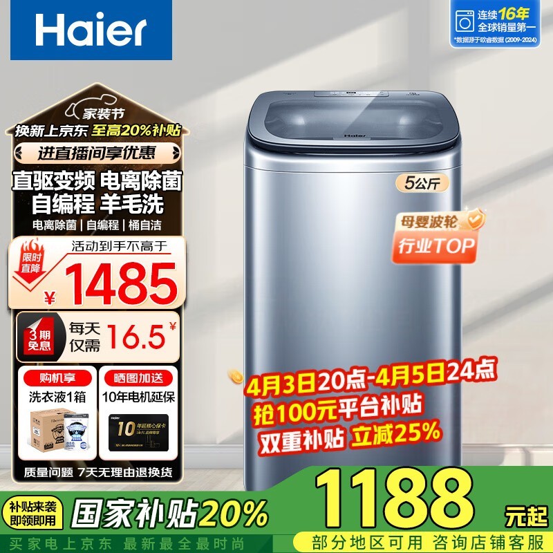 海尔XQB50-B378变频波轮洗衣机2022新款松雾蓝京东优惠