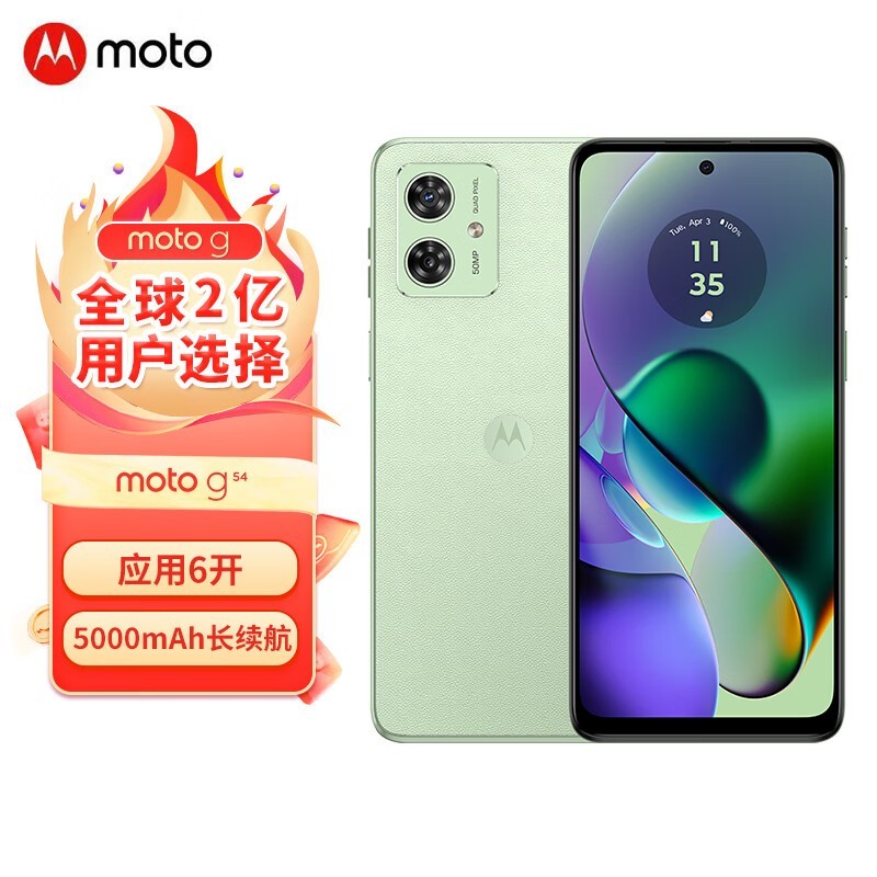 摩托罗拉moto g54大电池手机青葱绿8GB+256GB促销