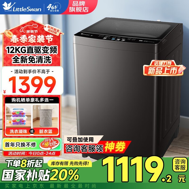 小天鹅12公斤波轮洗衣机京东价1099元