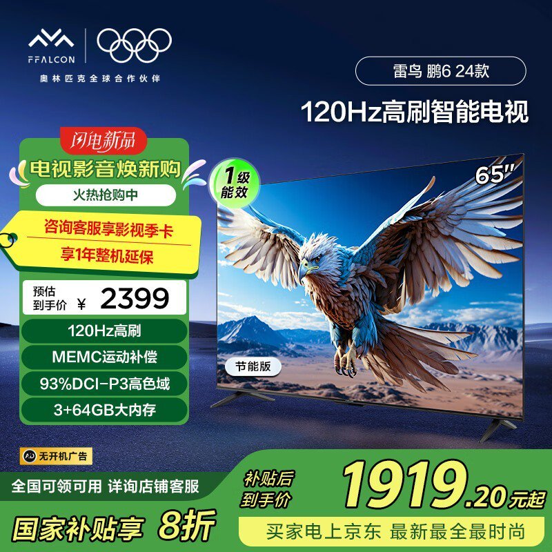 雷鸟鹏6 24款65英寸电视,plus会员优惠价