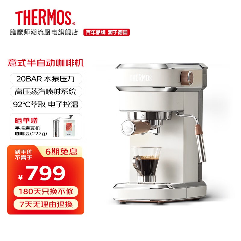膳魔师奶昔白意式半自动咖啡机特价799元享好咖啡