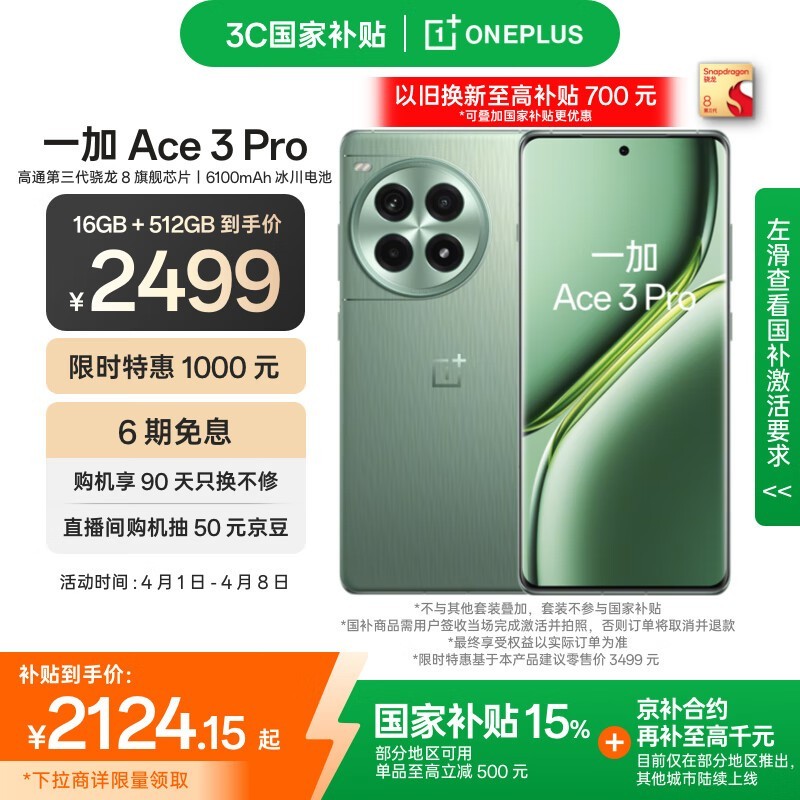 一加Ace3Pro京东限时优惠旗舰性能手机