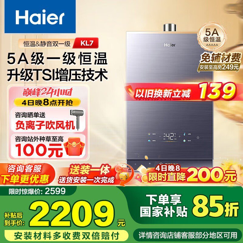 海尔Haier JSQ31 - 16KL7云程U1燃气热水器优惠价1781元