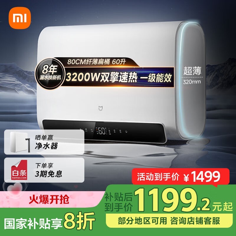 米家MIJIA S1储水式电热水器60L大容量智能沐浴好选择