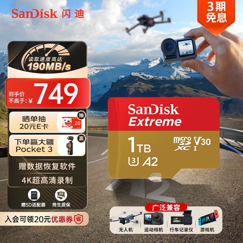 SanDisk A2 1TB MicroSD存储卡促销仅729元