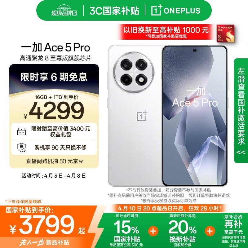 一加Ace5Pro白月瓷陶瓷版16+1TB京东到手3584元