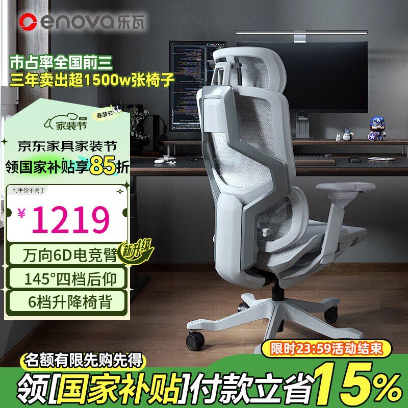 ENOVA自由家人体工学椅液态银舒适办公学习电竞椅