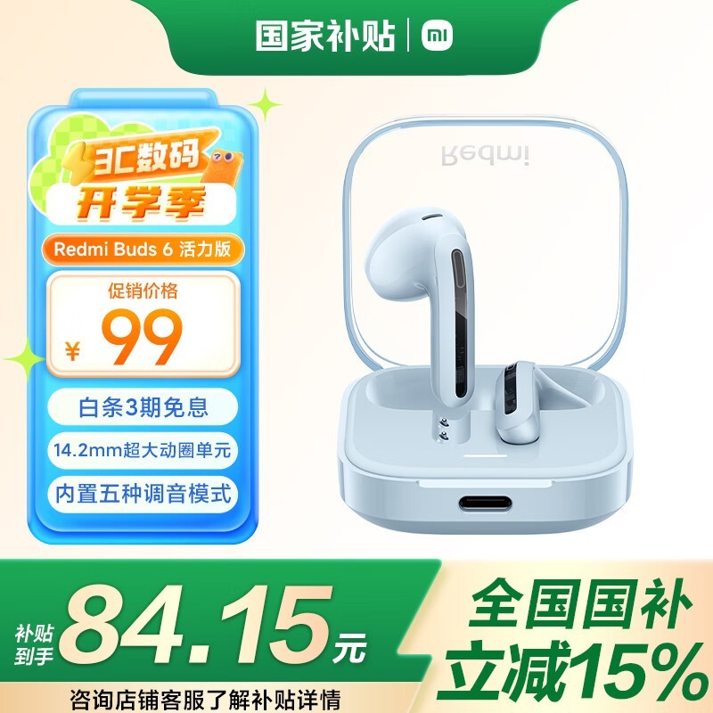 红米Buds 6活力版蓝牙耳机超值优惠仅83.73元