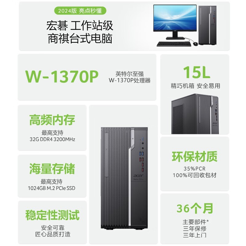 宏碁商祺工作站级台式电脑主机至强W-1370P处理器京东好价2699元