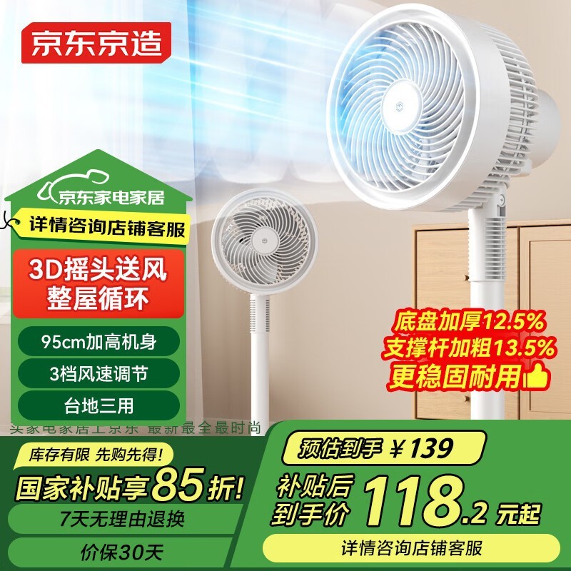 京东京造空气循环扇优惠,到手价118元