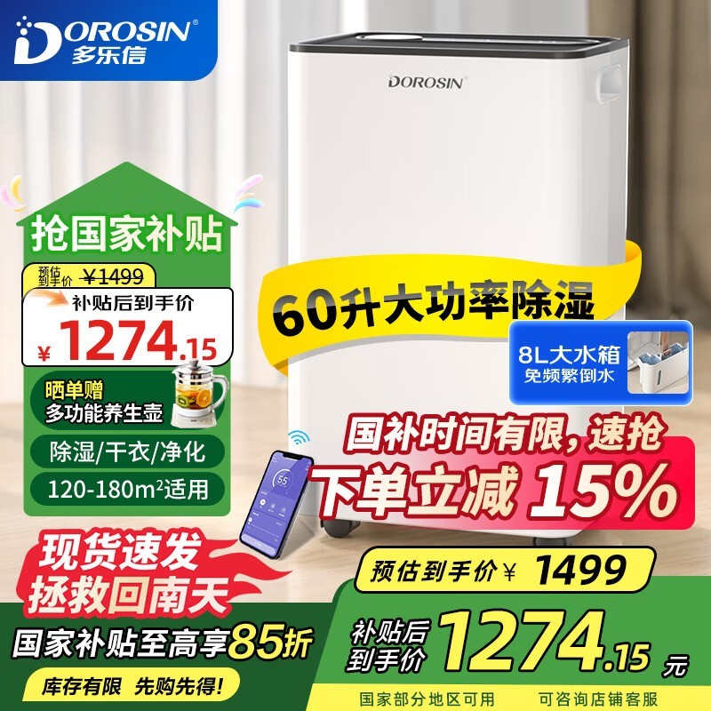 多乐信除湿机ER-60京东优惠价1469元支持APP遥控