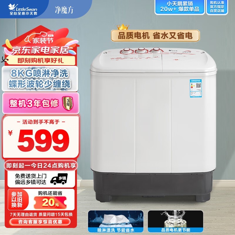 小天鹅双缸洗衣机TP80VDS08京东促销469元