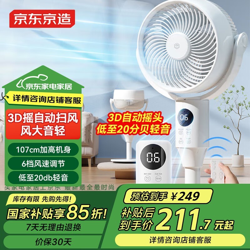 京东京造3D自动摇头空气循环扇促销中