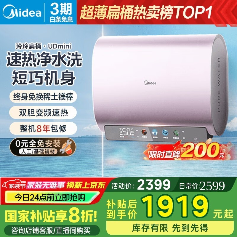 美的80升双胆扁桶电热水器超值优惠