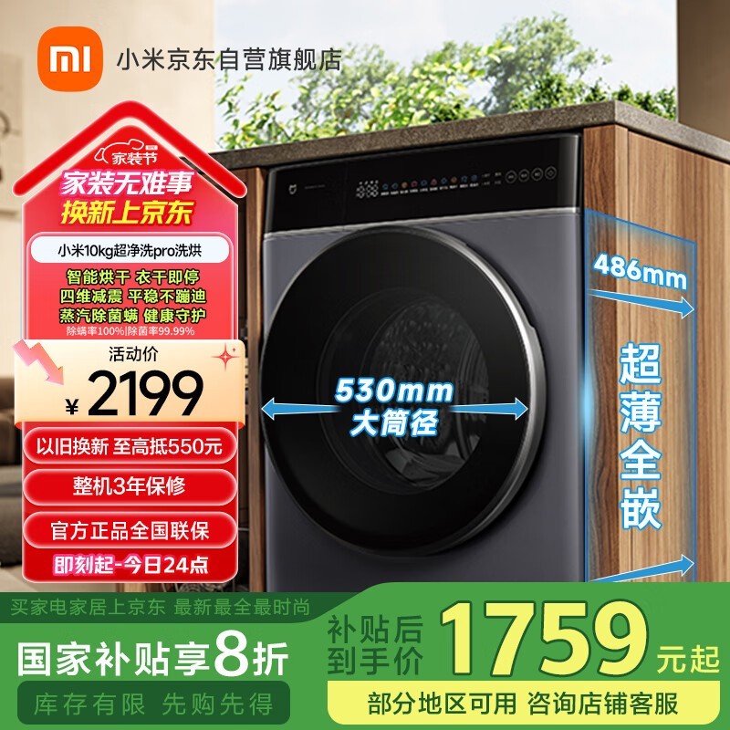 米家MIJIA滚筒洗衣机XHQG100MJ301大容量静音节能优惠促销