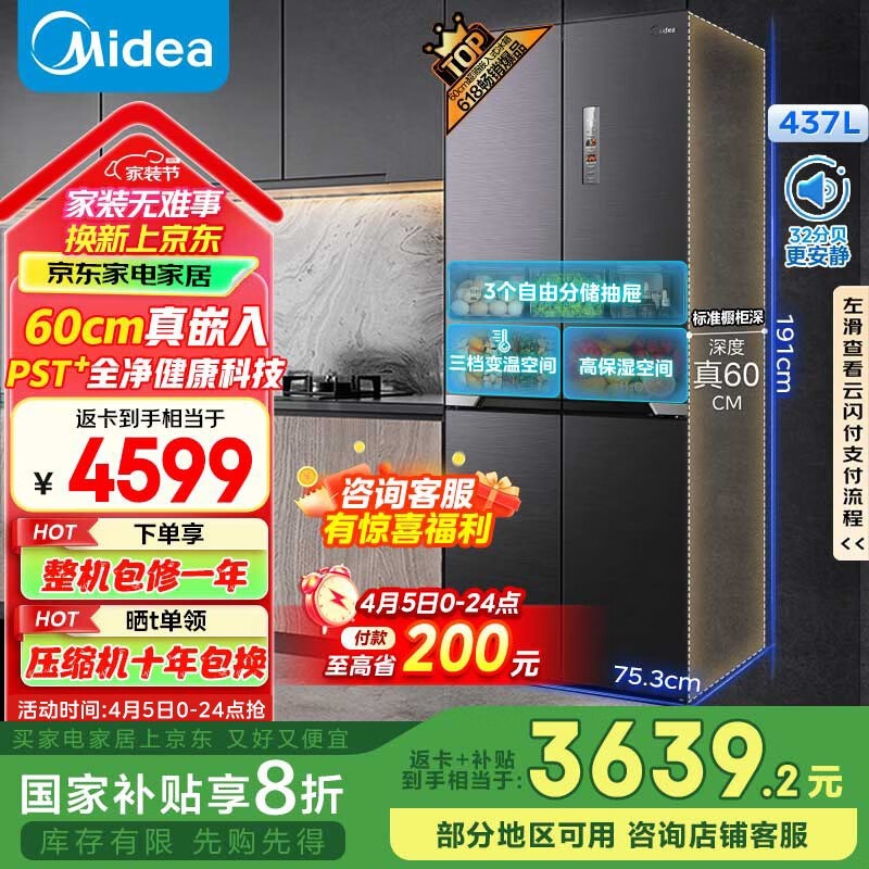 美的437L十字对开门冰箱超值优惠价