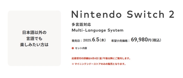 多语言版支持其他语言,也能和全球其他国家和地区的账号绑定,定价却为69,980日元,比日版贵了约一千元人民币。