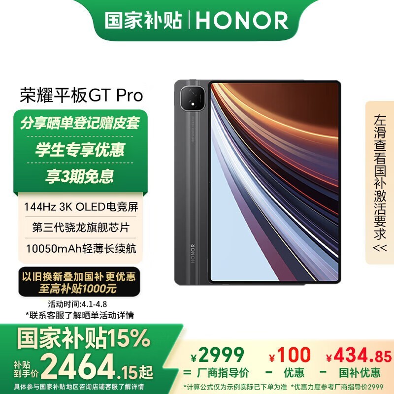 荣耀HONOR平板GT Pro京东优惠价2799元