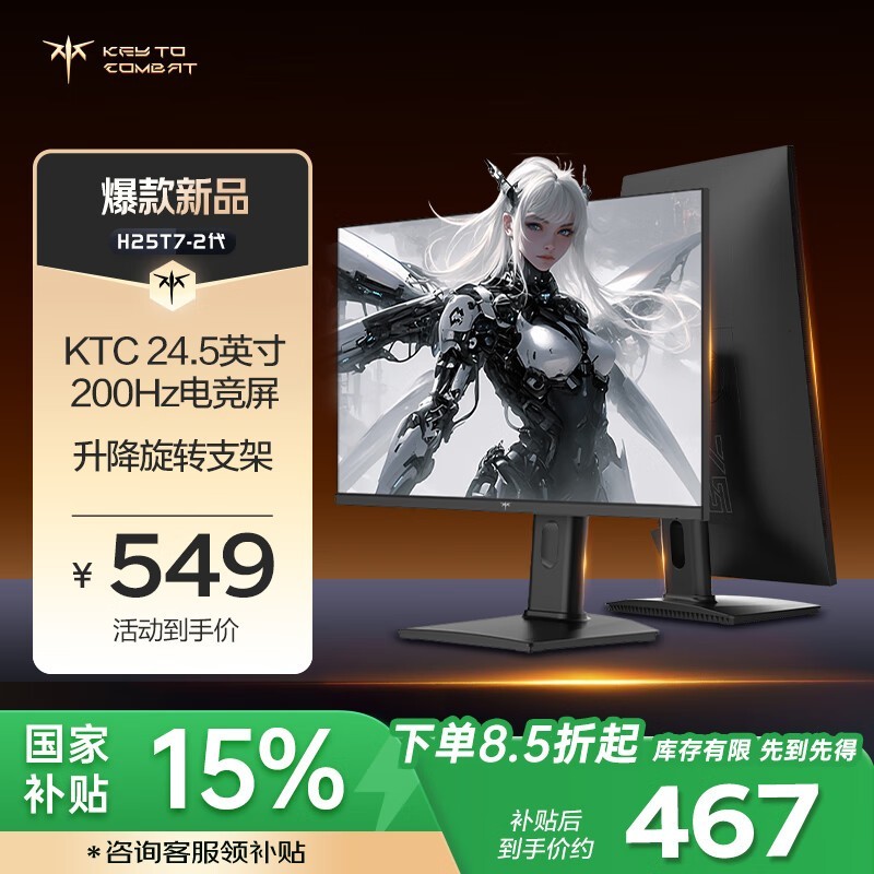 KTC 24.5英寸显示器H25T7-2,200Hz刷新仅464元起