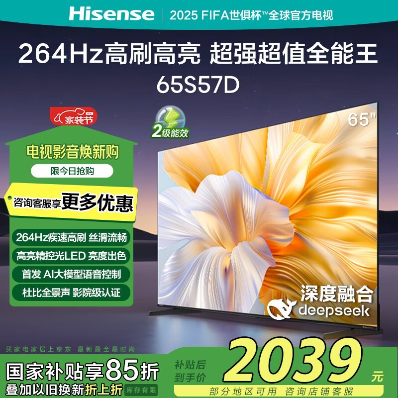 海信Hisense 65S57D电视264Hz刷新率仅2221元