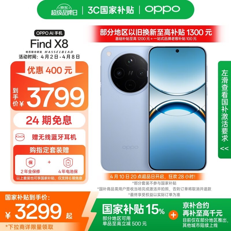 OPPO Find X8 5G手机12GB+256GB追风蓝京东活动价3079元