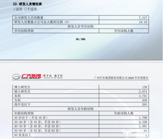 截至目前,广汽集团研发人员数量为7317人,占公司总人数的比例为19.1%。但值得注意的是,其研发人员中有不少是高中及以下学历。