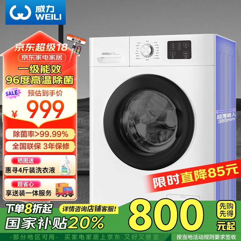 威力XQG80-1016PX洗衣机薄至38cm仅959元