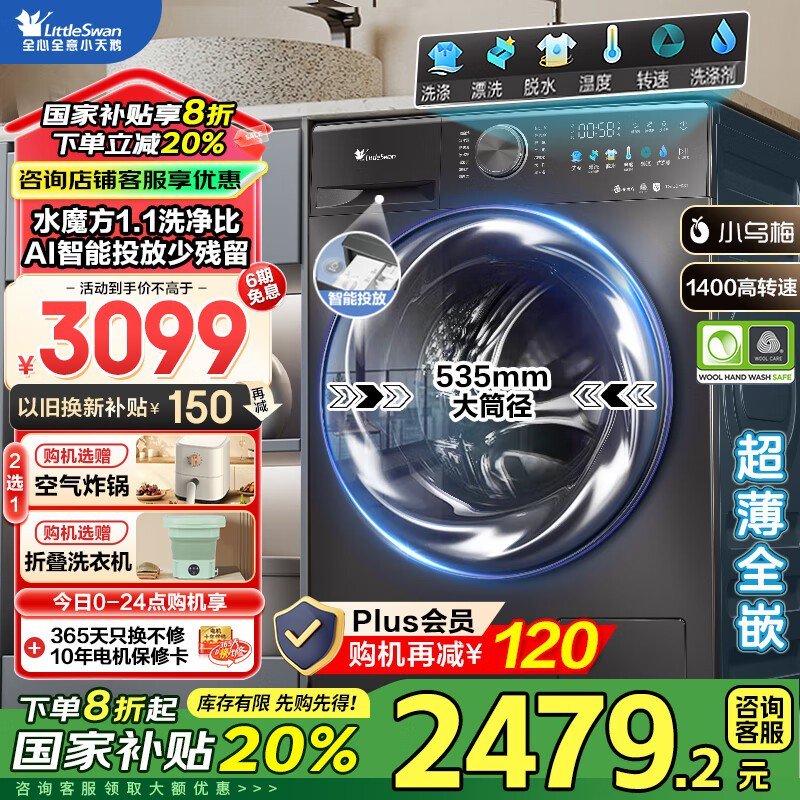 小天鹅滚筒洗衣机小乌梅2.0洗烘一体机10公斤
