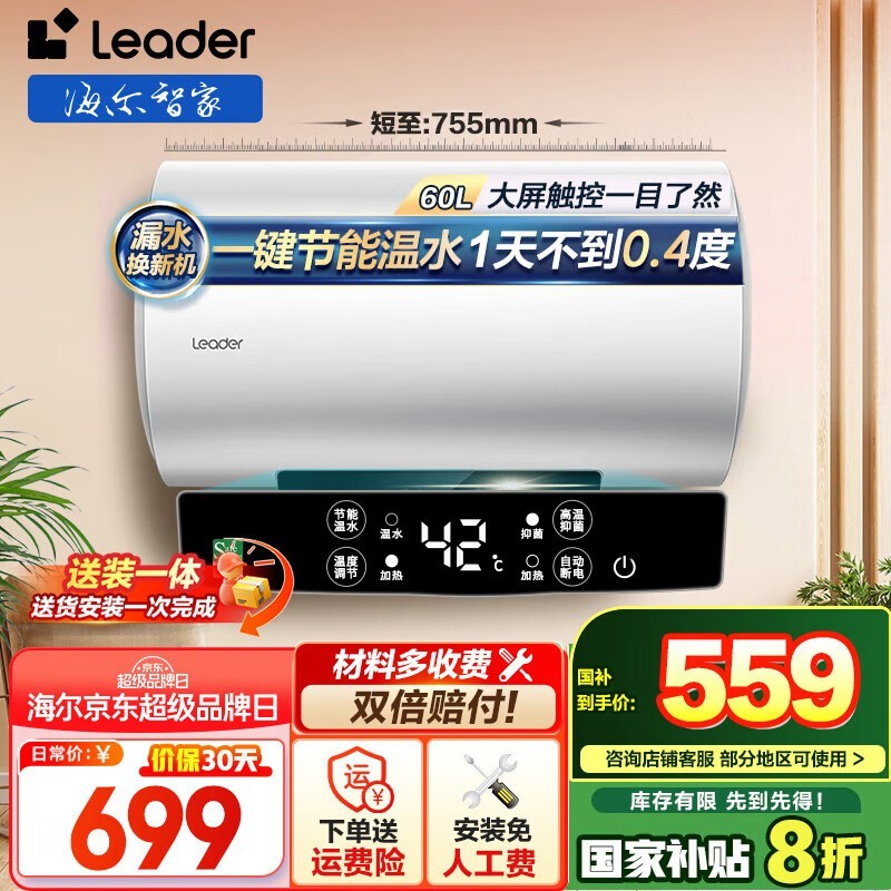 海尔80L电热水器,到手价540元