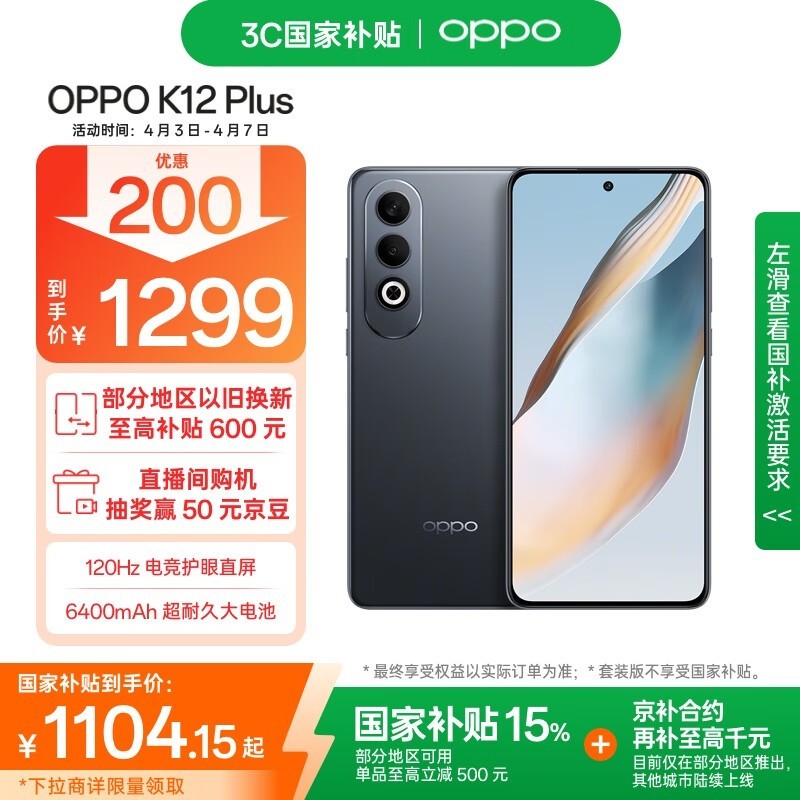 OPPO K12 Plus 5G手机京东优惠价仅需1088元