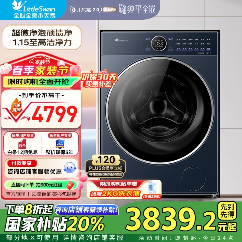 小天鹅 小乌梅2.0高奢版洗衣机直驱变频10kg大容量