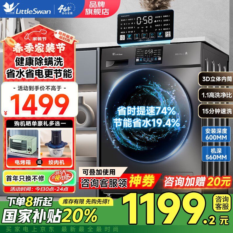 小天鹅滚筒洗衣机TG100V23PRO大容量高效洗净仅1159元